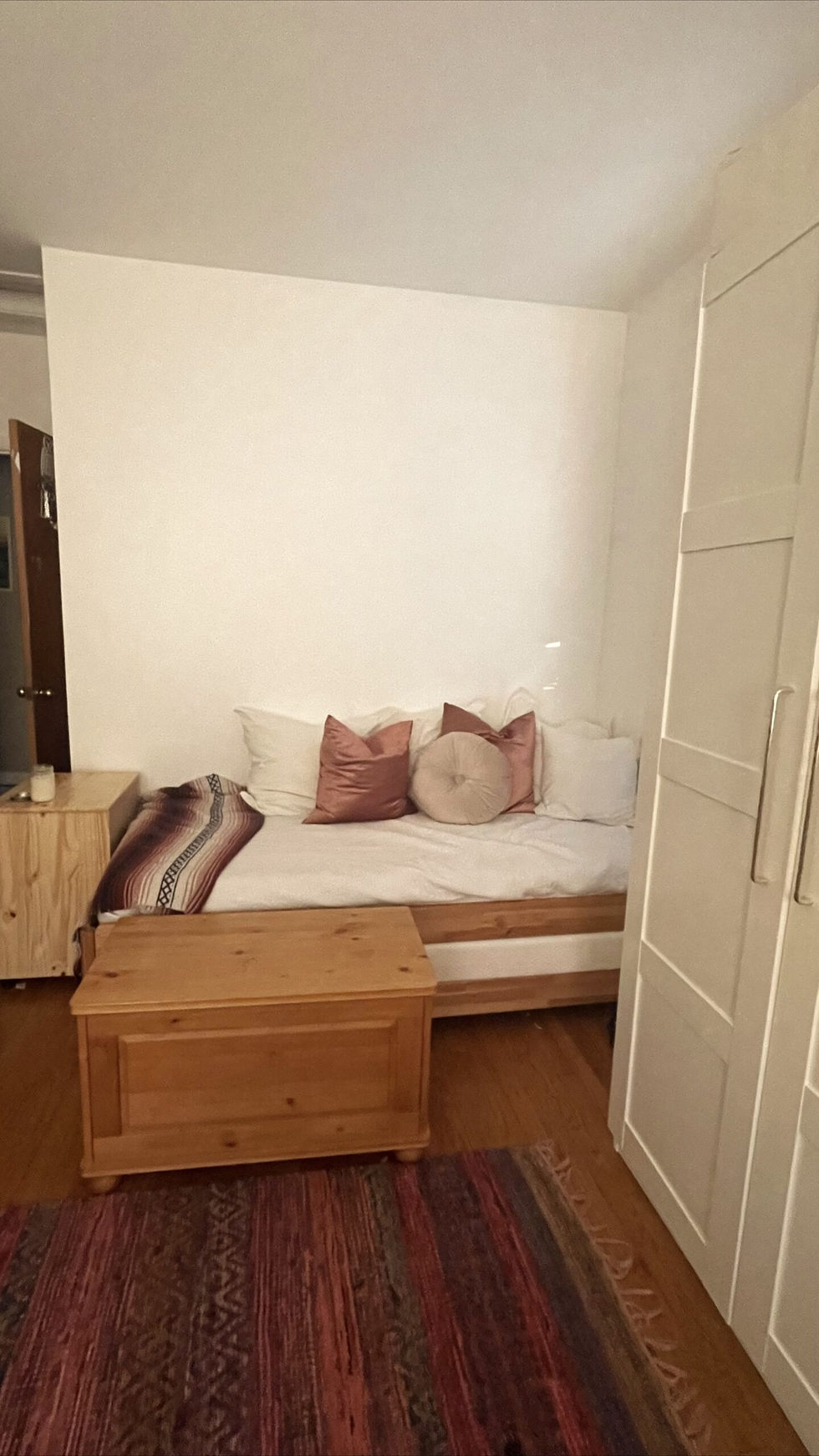 I wanted my office to feel cozy. I had a vision of using the space as a second guest bedroom as well. We have a lot of family from out of town and I always wanted them to feel like they could comfortably visit when they wanted to. I saw a few great photos from Pinterest that used a twin Ikea stackable bed in many different ways and I thought it would be a good piece to purchase as I am always moving around my furniture and spaces. I decided to style the twin as a daybed. Here are some of the ways I found creating a twin into a day bed to be helpful.